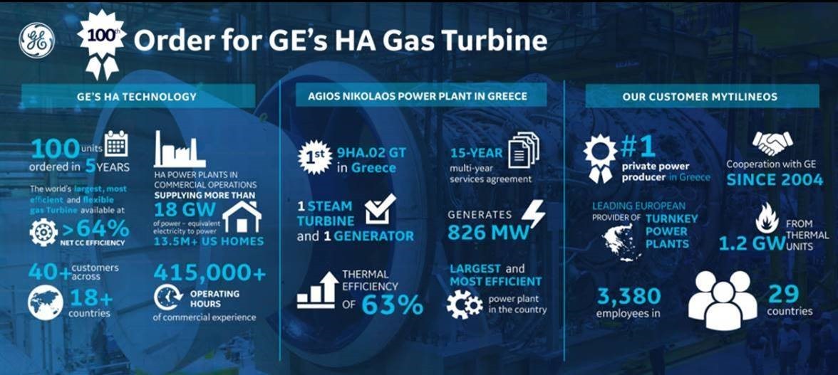 Αυτή η παραγγελία, επίσης, σηματοδοτεί την 100η παραγγελία του αεριοστρόβιλου HΑ της GE, του ταχύτερα αναπτυσσόμενου στις τάξεις του στόλου αεριοστρόβιλων. Ο 9HA.02 είναι ο πιο μεγάλος και πιο αποδοτικός αεριοστρόβιλος ο οποίος τροφοδοτεί τον πιο αποτελεσματικό σταθμό παραγωγής ηλεκτρικής ενέργειας, και με την εγκατάσταση του στο Ενεργειακό Κέντρο του Αγίου Νικολάου θα είναι ο πρώτος αεριοστρόβιλος HA που θα έχει εγκατασταθεί στην Ελλάδα.