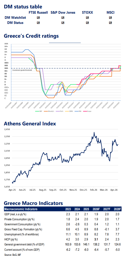 Η επαναφορά της Ελλάδας στο club των ανεπτυγμένων αγορών αποτυπώνει βελτίωση σε θεσμική υποδομή, προσβασιμότητα, βάθος αγοράς και ποιότητα αγοράς κεφαλαίου, στοιχεία που ιστορικά συνδέονται με χαμηλότερο κόστος κεφαλαίου. Το ενδιαφέρον επίσης είναι ότι η AXIA δεν βλέπει βίαιη μετάβαση από πλευράς των διαχειριστών των αναδυόμενων αγορών (EM managers). Αντιθέτως μιλά για σταδιακή επανατοποθέτηση, στοιχείο που μειώνει τον κίνδυνο για την αγορά. Το συμπέρασμα του οίκου είναι ότι η αναβάθμιση από μόνη της ίσως δεν φέρει αυτόματα μεγάλες παθητικές εισροές, αλλά ενισχύει τις προϋποθέσεις για πιο μόνιμη αλλαγή στην αποτίμηση της αγοράς.