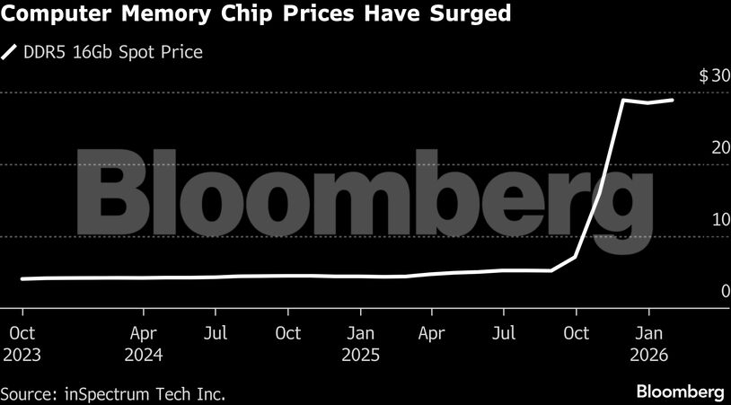 Αυτό το περιβάλλον εκτιμάται ότι θα διατηρηθεί τουλάχιστον έως το τέλος του 2026, ενισχύοντας την ανάπτυξη και εκτοξεύοντας τις τιμές μνήμης. Ενδεικτικά, δείκτης spot τιμών για chips DRAM έχει καταγράψει ισχυρή άνοδο τους τελευταίους μήνες.