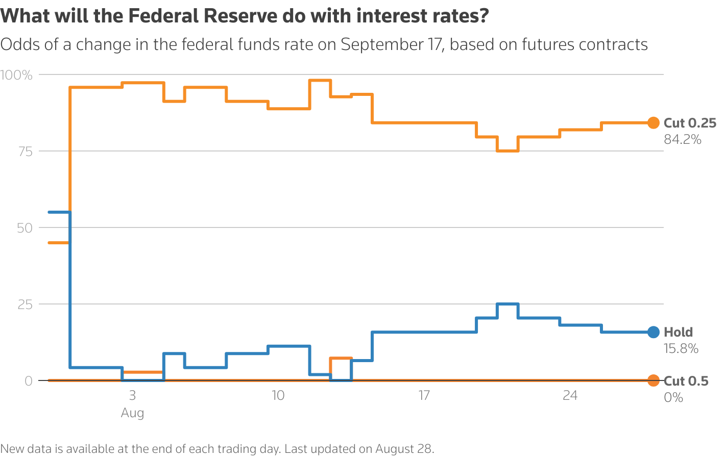 Ο επικεφαλής της Fed, Τζερόμ Πάουελ, στον οποίο ο Τραμπ έχει ασκήσει πιέσεις να μειώσει τα επιτόκια, σηματοδότησε μια μείωση τον Σεπτέμβριο στην ομιλία του στο Jackson Hole, αλλά προειδοποίησε επίσης για τον επίμονο πληθωρισμό.
