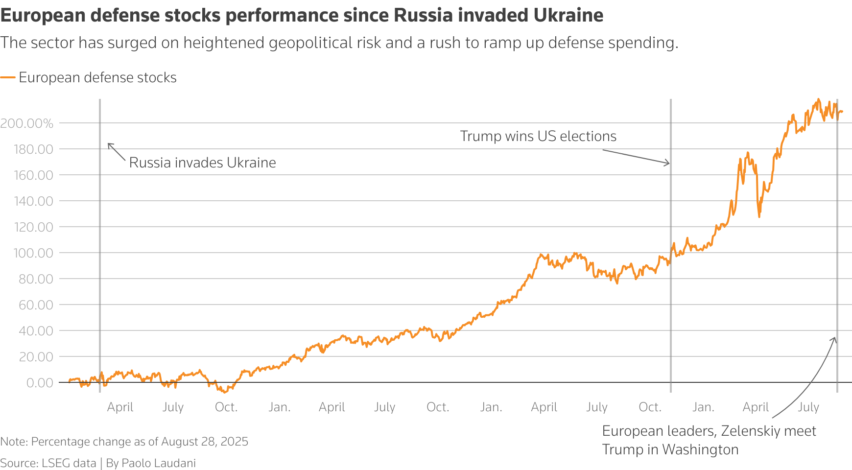 Οι μετοχές ευρωπαϊκών εταιρειών άμυνας, όμως, παραμένουν δημοφιλείς, καθώς η Ευρώπη δεσμεύεται για υψηλότερες δαπάνες άμυνας.