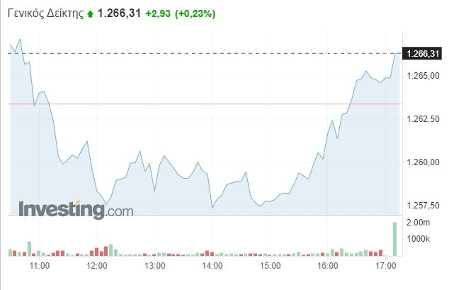 Πιο αναλυτικά, ο Γενικός Δείκτης σημείωσε οριακή αύξηση κατά 0,23% και διαμορφώθηκε στις 1.266,31 μονάδες, κερδίζοντας περίπου τρεις μονάδες σε σχέση με το κλείσιμο της Δευτέρας (1.263,38 μονάδες). Το τόξο των ημερήσιων διακυμάνσεων καθορίστηκε σε 11 μονάδες (από 1.257,21 έως 1.268,28 μονάδες), με τον τζίρο των συναλλαγών να κυμαίνεται στα 93,9 εκατ. ευρώ.