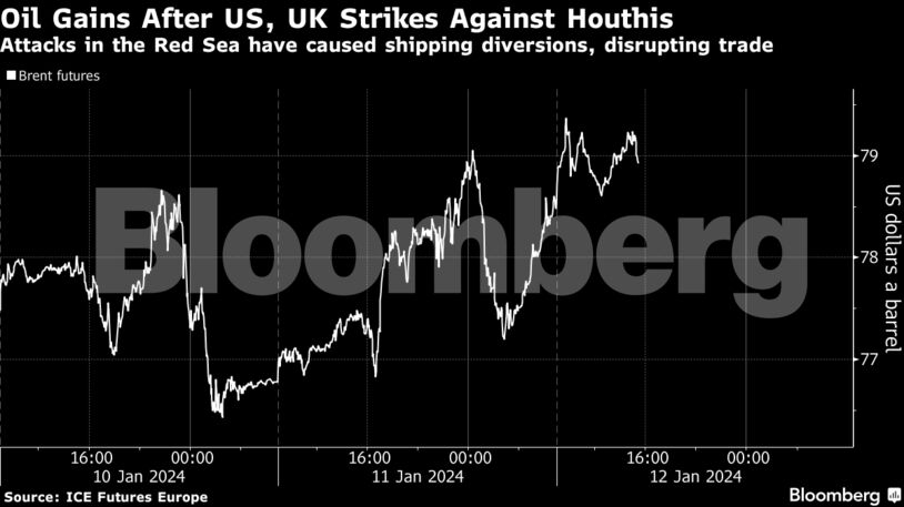 Στο μεταξύ, ο Αμερικανός πρόεδρος Τζο Μπάιντεν δήλωσε ότι πραγματοποιήθηκαν επιδρομές εναντίον πολλών στόχων που χρησιμοποιούνται από την υποστηριζόμενη από το Ιράν ομάδα των Χούθι, ενώ Αμερικανοί αξιωματούχοι δήλωσαν ότι χτυπήθηκαν εγκαταστάσεις ραντάρ και εκτοξευτές πυραύλων. Ο παγκόσμιος δείκτης αναφοράς Brent σημείωσε άνοδο έως και 2,5% πάνω από τα 79,32 δολάρια το βαρέλι, καθώς οι επενδυτές προσπαθούσαν να εκτιμήσουν το πόσο πιθανόν είναι η κλιμάκωση των εχθροπραξιών να πυροδοτήσει μια ευρύτερη σύγκρουση στη Μέση Ανατολή.