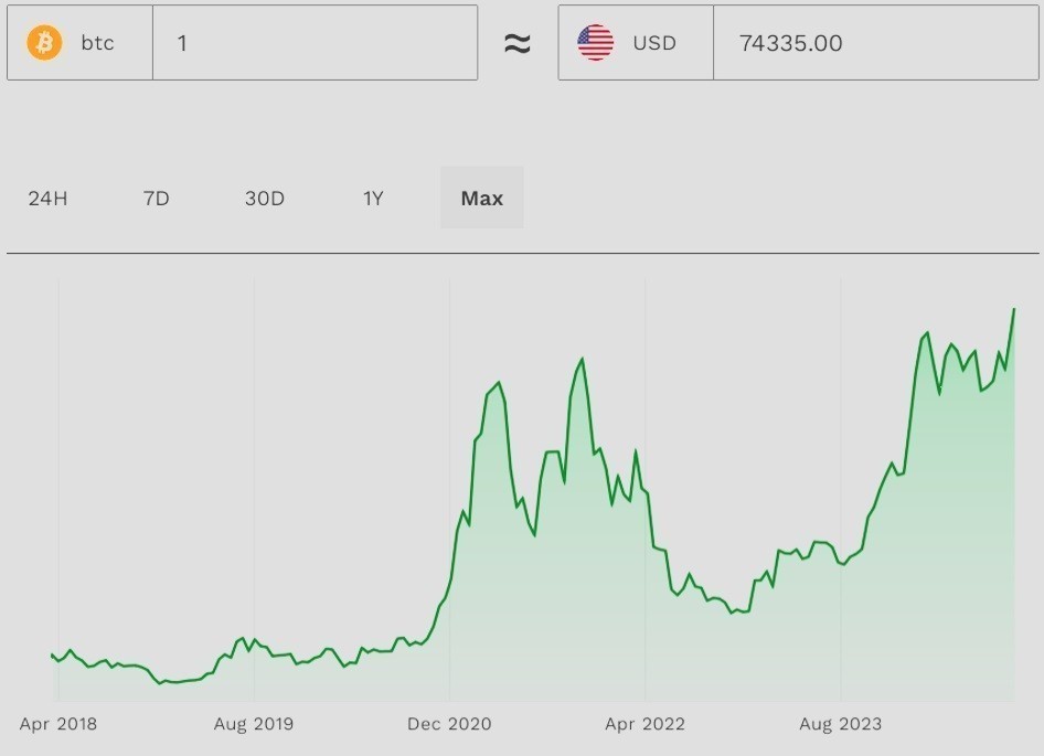 Η τιμή του bitcoin έχει συντρίψει το προηγούμενο ιστορικό υψηλό, σκαρφαλώνοντας πάνω από τα 75.000 δολάρια, ενώ άλλα σημαντικά κρυπτονομίσματα έχουν επίσης εκτοξευθεί, με πρώτο και καλύτερο το dogecoin, το οποίο είναι το αγαπημένο του δισεκατομμυριούχου Έλον Μασκ.