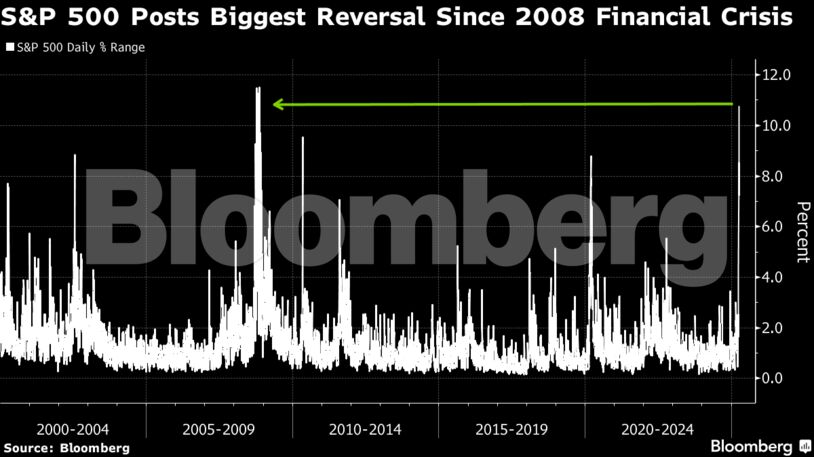 Στη Wall Street, η απόφαση Τραμπ προκάλεσε ράλι άνευ προηγουμένου. Ο S&P 500 εκτινάχθηκε κατά 9,52% στις 5.456,90 μονάδες, καταγράφοντας τη μεγαλύτερη ημερήσια άνοδο από το 2008 και την τρίτη μεγαλύτερη στην ιστορία μετά τον Β’ Παγκόσμιο Πόλεμο. Ο Dow Jones ενισχύθηκε κατά 2.962,86 μονάδες, ή 7,87%, κλείνοντας στις 40.608,45, σημειώνοντας τη μεγαλύτερη ποσοστιαία άνοδο από τον Μάρτιο του 2020. Ο Nasdaq Composite απογειώθηκε κατά 12,16%, κλείνοντας στις 17.124,97.