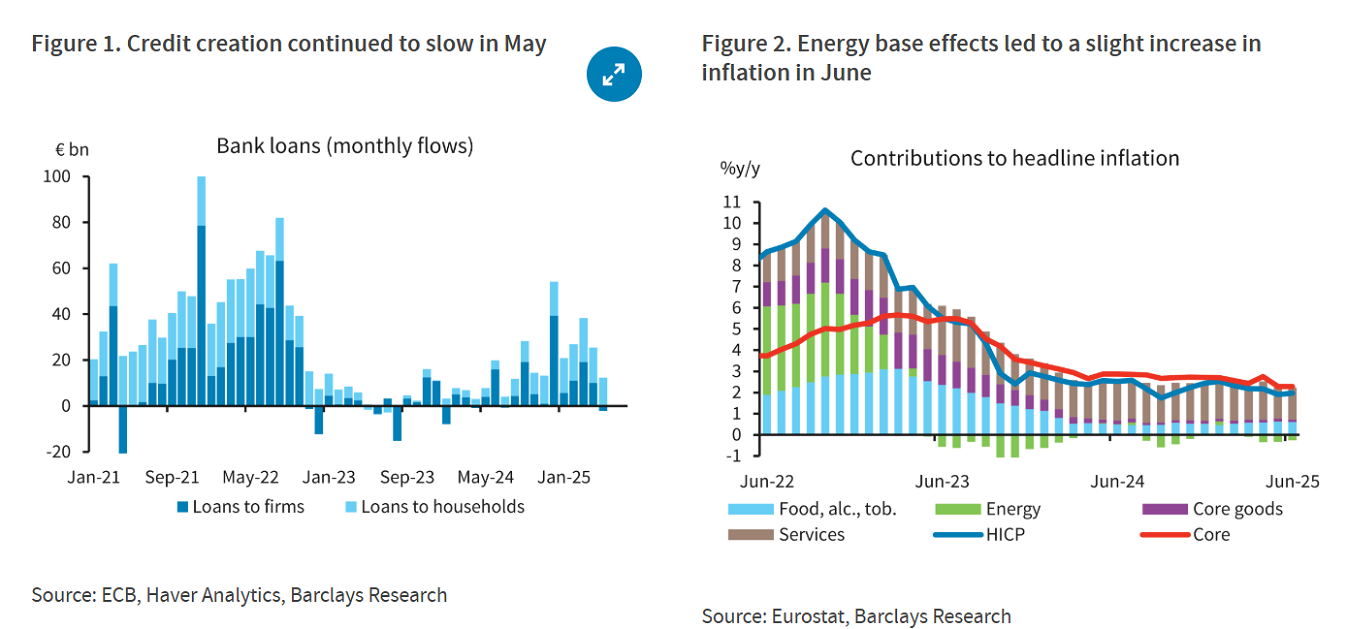 Η ευρωζώνη εισέρχεται στο δεύτερο εξάμηνο του 2025 με μικτά σήματα από το μέτωπο της οικονομικής δραστηριότητας, του πληθωρισμού και της νομισματικής πολιτικής, ενώ οι εμπορικές σχέσεις με τις ΗΠΑ παραμένουν αβέβαιες. Παρά την ενίσχυση ορισμένων βραχυχρόνιων δεικτών, οι υποκείμενοι κίνδυνοι σε επίπεδο ανάπτυξης, δανεισμού και διεθνών σχέσεων συνεχίζουν να βαραίνουν τις προοπτικές, εξηγεί η βρετανική τράπεζα Barclays.