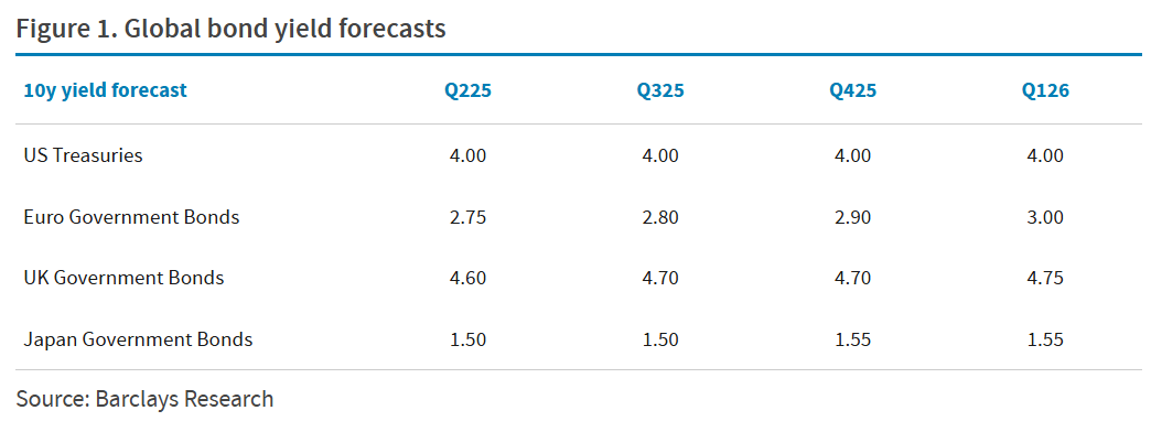 Η βρετανική τράπεζα Barclays αναμένει ότι η παγκόσμια (και η αμερικανική) ανάπτυξη θα επιβραδυνθεί σημαντικά σε σχέση με πέρυσι. Το θέμα είναι ότι οι προοπτικές μπορεί να επιδεινωθούν δραματικά αν πραγματοποιηθούν τα χειρότερα δυνατά αποτελέσματα όσον αφορά τους δασμούς. Η τράπεζα θεωρεί, σε αυτό το σενάριο, τις τρέχουσες προβλέψεις της υπερβολικά αισιόδοξες. Για πρώτη φορά εδώ και πολλά τρίμηνα, προτιμά τα ομόλογα έναντι των μετοχών.
