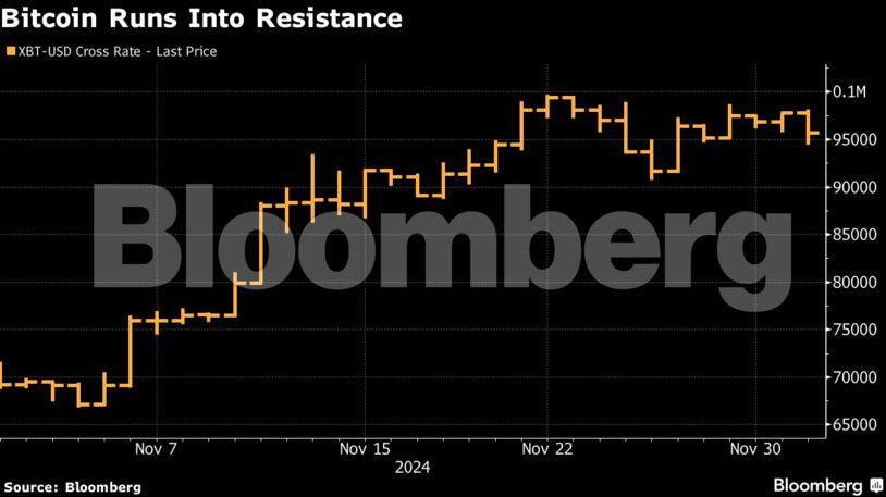 Το Bitcoin ήταν σταθερό στα 95.734 δολάρια στις 9:33 π.μ. της Τρίτης στη Σιγκαπούρη. Έφτασε στο υψηλό ρεκόρ των 99.728 δολαρίων στις 22 Νοεμβρίου.
