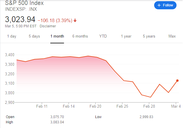 Το sell off στις αγορές μετοχών συνεχίζεται από τα μέσα Φεβρουαρίου, εξανεμίζοντας σχεδόν 6,5 τρισ. δολ. από τις αξίες των χρηματιστηρίων, την ώρα που αυξάνονταν τα κρούσματα του ιού.