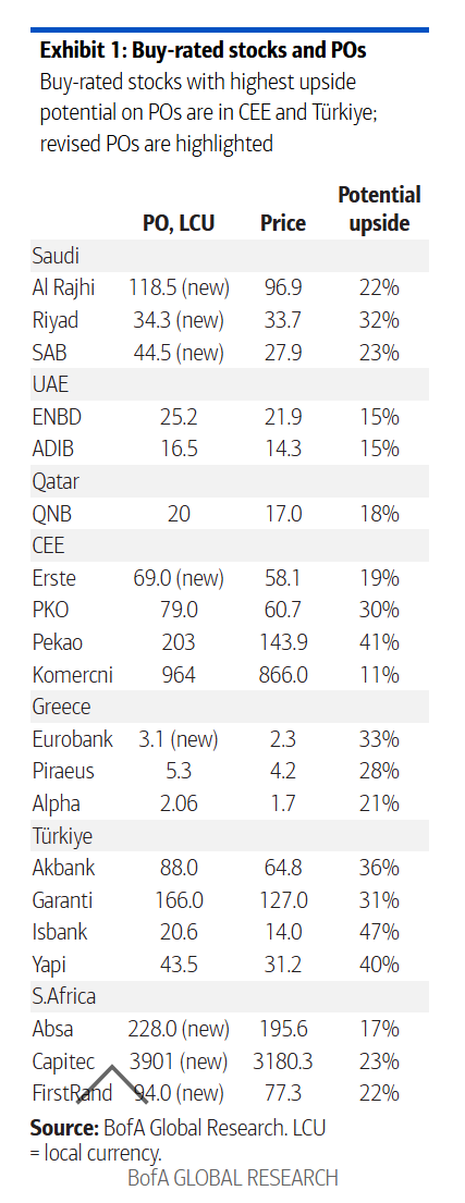 Η Bank of America τοποθετεί την Eurobank στην πρώτη θέση των επιλογών της από την Ελλάδα και στις κορυφαίες θέσεις από την περιοχή EMEA για το 2025. Η σύσταση είναι υπεραπόδοση και η νέα τιμή-στόχος είναι τα 3,1 ευρώ από 2,84 ευρώ πριν (9% αύξηση).