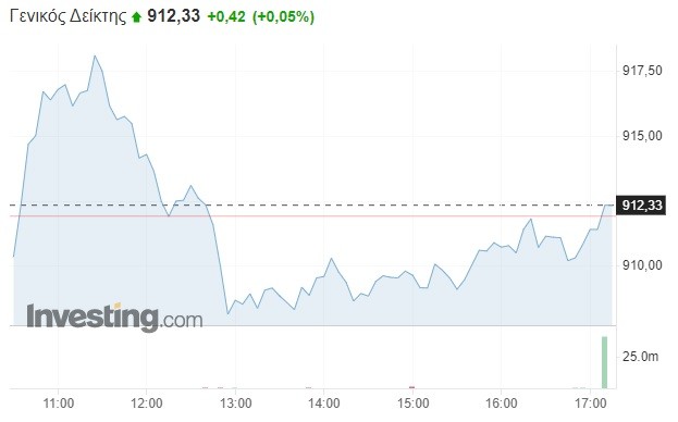 Πιο συγκεκριμένα, ο Γενικός Δείκτης σημείωσε οριακή άνοδο κατά 0,05% και διαμορφώθηκε στις 912,33 μονάδες, κερδίζοντας μόλις μισή μονάδα σε σχέση με το κλείσιμο της Τρίτης (911,91 μονάδες). Το τόξο των ημερήσιων διακυμάνσεων καθορίστηκε σε 10 μονάδες (από 908,13 έως 918,46 μονάδες), με τον τζίρο των συναλλαγών να εκτινάσσεται στα 282 εκατ. ευρώ, ως απόρροια της αναδιάρθρωσης των δεικτών MSCI και της λήξης του μήνα.