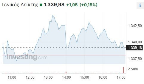 Πιο αναλυτικά, ο Γενικός Δείκτης σημείωσε ανεπαίσθητη άνοδο κατά 0,09% και διαμορφώθηκε στις 1.339,18 μονάδες, κερδίζοντας μόλις μία μονάδα σε σχέση με το κλείσιμο της Πέμπτης (1.338,03 μονάδες). Το τόξο των ημερήσιων διακυμάνσεων καθορίστηκε σε εννέα μονάδες (από 1.335,92 έως 1.344,21 μονάδες), με τον τζίρο των συναλλαγών να κυμαίνεται στα 79,9 εκατ. ευρώ.