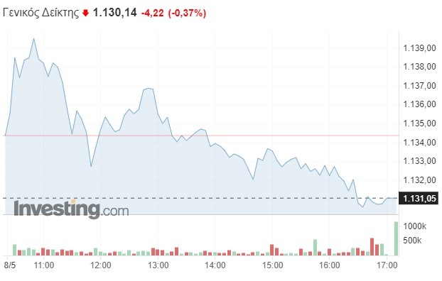 Πιο συγκεκριμένα, ο Γενικός Δείκτης σημείωσε ελεγχόμενη πτώση κατά 0,37% και διαμορφώθηκε στις 1.130,14 μονάδες, χάνοντας τέσσερις μονάδες σε σχέση με το κλείσιμο της Τετάρτης (1.134,36 μονάδες). Το τόξο των ημερήσιων διακυμάνσεων καθορίστηκε σε εννέα μονάδες (από 1.130,14 έως 1.139,51 μονάδες), με τον τζίρο των συναλλαγών να κυμαίνεται στα 63,4 εκατ. ευρώ.