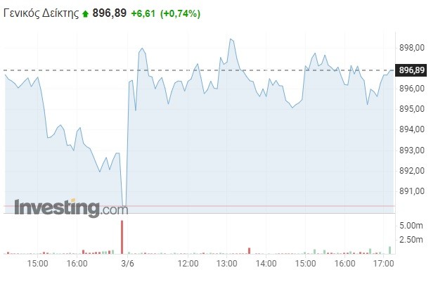 Μέσα σ΄ αυτό το πλαίσιο, ο Γενικός Δείκτης διατηρείται άνω του κινητού μέσου όρου των τελευταίων 200 ημερών (887 μονάδες), έχοντας ως βασικές στηρίξεις τις 880 και τις 850 μονάδες. Οι επόμενες αντιστάσεις, δε, συναντώνται στις 900 και τις 920 μονάδες.
