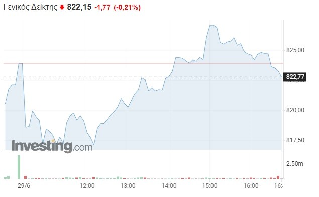 Με δεδομένο ότι βρισκόμαστε μόλις δύο ημέρες πριν τη λήξη του α’ εξαμήνου, ο Γενικός Δείκτης μετράει σωρευτικές απώλειες της τάξης περίπου του 7%, απέχοντας σχεδόν 150 μονάδες από το υψηλό έτους των 970 μονάδων. Από την άλλη πλευρά, βέβαια, η εν λόγω πτώση είναι συγκριτικά υποδεέστερη σε σχέση με την αντίστοιχη των ξένων αγορών, η οποία προσεγγίζει το 20%.