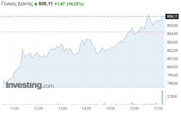 Τις 800 μονάδες υπερασπίστηκε το Χρηματιστήριο Αθηνών, καθώς Τέρνα Ενεργειακή, Eurobank και Motor Oil έκλεισαν πέριξ του +3% και παρείχαν σημαντικά στηρίγματα στην αγορά. Αποτέλεσμα ήταν ο Γενικός Δείκτης να παραμένει -έστω και οριακά- σε θετικό έδαφος για δεύτερη διαδοχική ημέρα. Από την άλλη πλευρά, ωστόσο, η συναλλαγματική δραστηριότητα αποδείχθηκε άκρως απογοητευτική, δείγμα των επίμονων προκλήσεων.