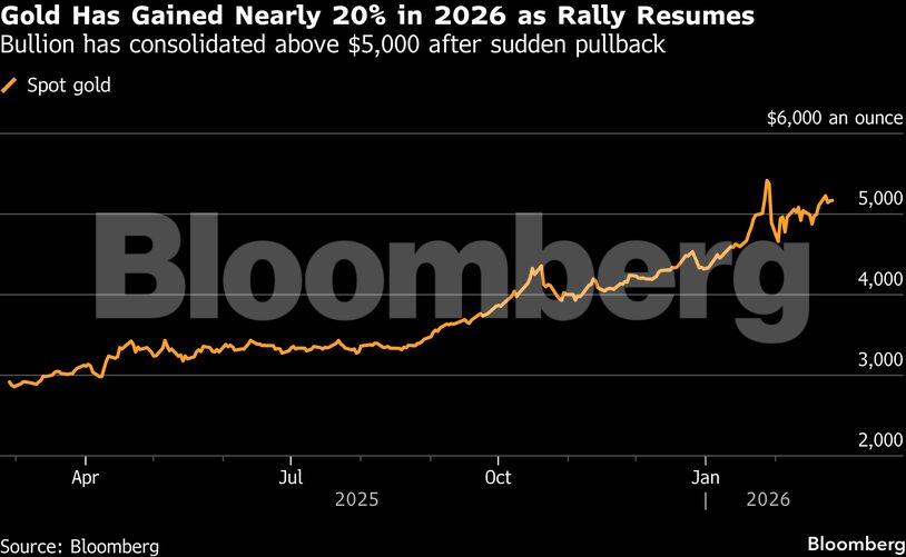 Ο χρυσός έχει σημειώσει αύξηση σχεδόν 20% φέτος, διατηρώντας τη θέση του πάνω από τα 5.000 δολάρια μετά από μια σύντομη πτώση από το ιστορικό υψηλό των 5.595 δολαρίων στα τέλη Ιανουαρίου. Οι αναλυτές αποδίδουν τη νέα ανοδική τάση στις ανανεωμένες γεωπολιτικές εντάσεις και τις νέες αβεβαιότητες γύρω από τους δασμούς, οι οποίες ενισχύουν τη διαρκή ανοδική πορεία του χρυσού.