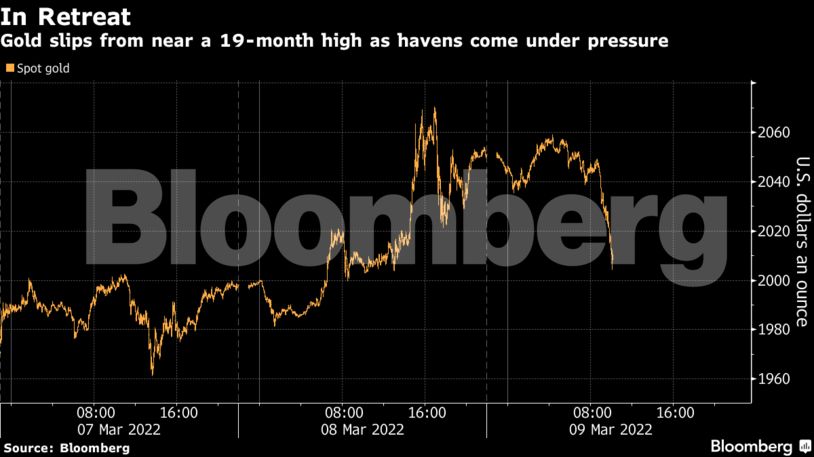 Ο χρυσός υποχώρησε από τα υψηλά 19 μηνών, καθώς μειώνεται το κλίμα ανησυχίας που επικρατούσε στους επενδυτές, παρά τις συνεχιζόμενες ανησυχίες για τις επιπτώσεις από την εισβολή της Ρωσίας στην Ουκρανία, οι οποίες ήδη έχουν αυξήσει τον πληθωρισμό σε πολλές οικονομίες παγκοσμίως.