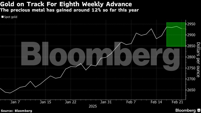 Παρά το γεγονός ότι η τιμή του πολύτιμου μετάλλου υποχώρησε κάτω από τα 2.928 δολάρια ανά ουγγιά την Παρασκευή, παραμένει αυξημένη πάνω από 1% σε εβδομαδιαία βάση. Αν επιβεβαιωθεί η άνοδος αυτή, θα αποτελεί το μεγαλύτερο σερί κερδών από το 2020.