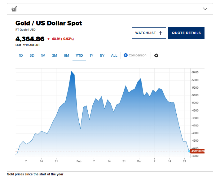 «Παρότι ο χρυσός ενισχύθηκε αρχικά λόγω της ζήτησης για ασφαλή καταφύγια στην αρχή της σύγκρουσης [με το Ιράν], οι τιμές έχουν υποχωρήσει πρόσφατα», δήλωσε ο Ρατζάτ Μπατατσάρια, ανώτερος επενδυτικός ειδικός της Standard Chartered.