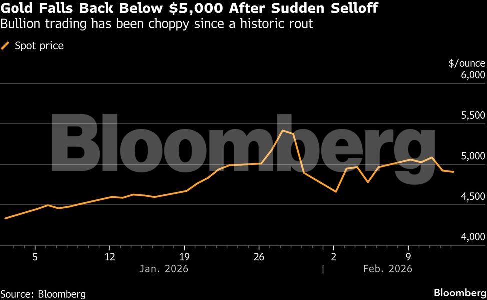 Ο χρυσός είχε αγγίξει ιστορικό υψηλό πάνω από τα 5.595 δολάρια ανά ουγγιά στις 29 Ιανουαρίου, στο αποκορύφωμα μιας πολυετούς ανόδου που επιταχύνθηκε όταν κερδοσκοπικοί επενδυτές εισήλθαν δυναμικά στην αγορά τον περασμένο μήνα. Στις δύο συνεδριάσεις που ακολούθησαν, το πολύτιμο μέταλλο υποχώρησε περίπου 13%.