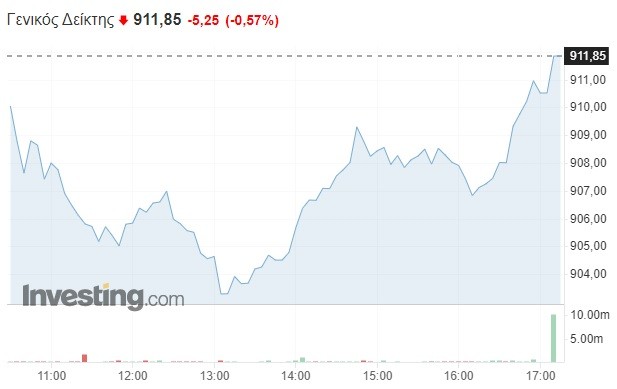 Πιο συγκεκριμένα, κατά τη διάρκεια της Παρασκευής, ο Γενικός Δείκτης σημείωσε απώλειες κατά 0,57% και διαμορφώθηκε στις 911,85 μονάδες, χάνοντας σχεδόν 5,5 μονάδες σε σχέση με το κλείσιμο της Πέμπτης (917,10 μονάδες). Το τόξο των ημερήσιων διακυμάνσεων καθορίστηκε σε 11 μονάδες (από 902,81 έως 913,65 μονάδες), με τον τζίρο των συναλλαγών να κυμαίνεται στα 87 εκατομμύρια ευρώ, χάρη στην αναδιάρθρωση των δεικτών FTSE (η Autohellas παίρνει τη θέση του ΑΔΜΗΕ στον 25άρη).