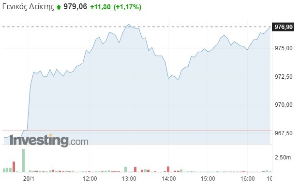 Ως αποτέλεσμα της σημερινής μεταβολής, η εγχώρια αγορά επέστρεψε κοντά στο υψηλότερο επίπεδο της τελευταίας 8ετίας (από τον Δεκέμβριο του 2014), ανακτώντας την άμεση επαφή με το ορόσημο των 1.000 μονάδων. Ας μην ξεχνάμε, δε, ότι από τις αρχές του έτους ο Γενικός Δείκτης μετράει άνοδο της τάξης του 7%.