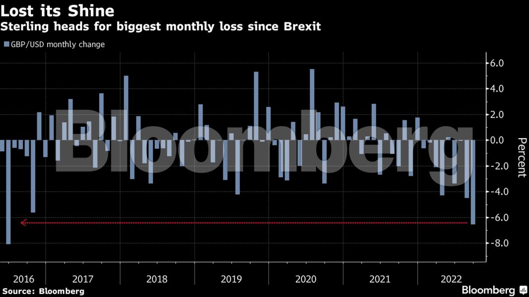Η στερλίνα έχασε νωρίτερα 1,1% στο 1,0767 δολάριο, μετριάζοντας τη χθεσινή άνοδο που σημείωσε μετά την ανακοίνωση της ΒοΕ για απεριόριστη αγορά μακροπρόθεσμων ομολόγων μέχρι τις 14 Οκτωβρίου, με στόχο να προλάβει ένα συστημικό κραχ στη βρετανική αγορά ομολόγων. Η σημερινή πτώση βάζει το νόμισμα σε τροχιά για τις χειρότερες μηνιαίες επιδόσεις από τον Ιούνιο του 2016 που η χώρα αποφάσισε να βγει από την ΕΕ (Brexit).