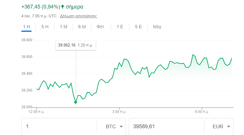 To πρωί της Πέμπτης η τιμή του ανερχόταν σε 43.264 δολάρια με άνοδο 0,94%.