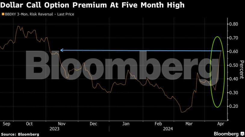 Το κόστος των στοιχημάτων για περαιτέρω κέρδη του δολαρίου στην αγορά δικαιωμάτων προαίρεσης αυξήθηκε στο υψηλότερο επίπεδο από τον Νοέμβριο, καθώς η ανθεκτικότητα της αμερικανικής οικονομίας αυξάνει τη ζήτηση για το νόμισμα.