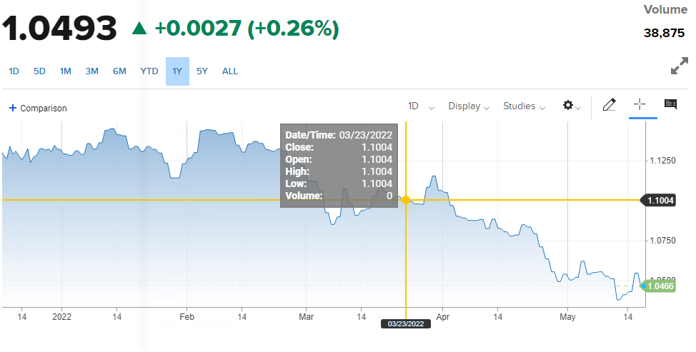 Το δολάριο έχει ενισχυθεί λόγω της αποστροφής κινδύνου που επικρατεί στις αγορές για τους εξής λόγους: τον πόλεμο στην Ουκρανία, τον αυξανόμενο πληθωρισμό, τα προβλήματα εφοδιασμού, την επιβράδυνση της ανάπτυξης και η σύσφιξη της νομισματικής πολιτικής, που ωθούν τους επενδυτές προς τα παραδοσιακά «ασφαλή» επενδυτικά καταφύγια.