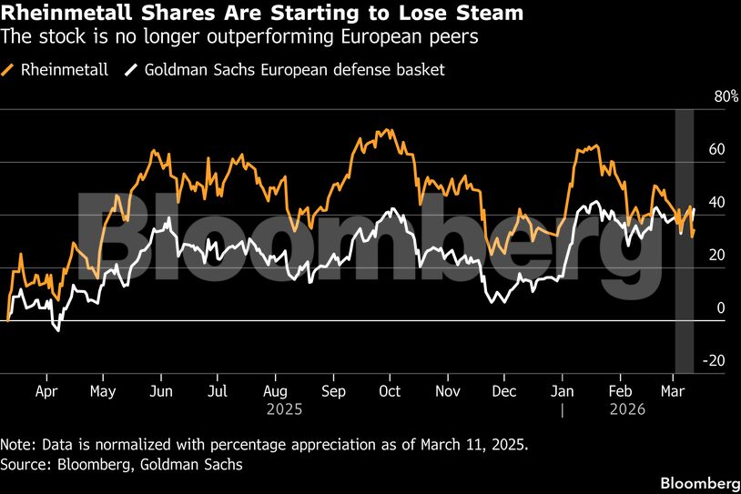 Παρά τη συνεχιζόμενη σύγκρουση στην Ουκρανία, τον νέο πόλεμο στη Μέση Ανατολή και την αύξηση των στρατιωτικών προϋπολογισμών, οι μετοχές του κλάδου κινούνται σε στάσιμα επίπεδα από τα μέσα Ιανουαρίου. Ακόμη και εταιρείες όπως η Rheinmetall, διαπραγματεύονται περίπου 20% χαμηλότερα από τα υψηλά του Σεπτεμβρίου.