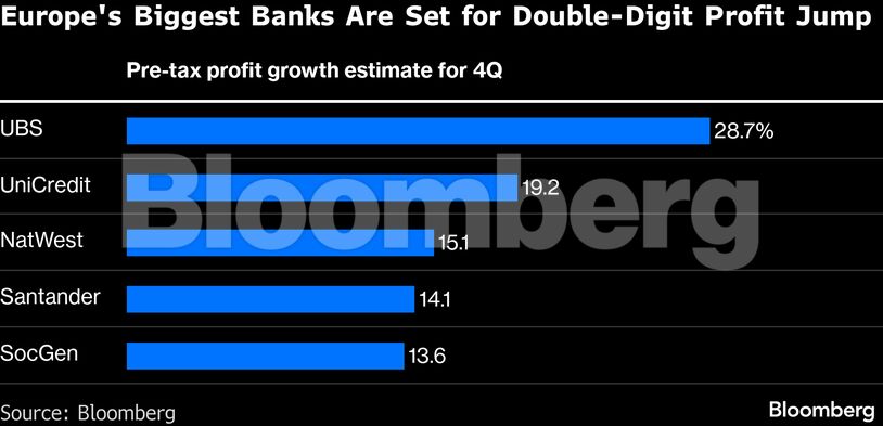 Θετικά κινείται και ο δανεισμός. Η βελτίωση των καθαρών εσόδων από τόκους αναμένεται να ενισχύσει τα κέρδη από χορηγήσεις στην Intesa Sanpaolo, αλλά και στη βρετανική Lloyds, η οποία εκτιμάται ότι θα υπερδιπλασιάσει τα προ φόρων κέρδη της το τέταρτο τρίμηνο. Στην Ισπανία, η CaixaBank ενδέχεται ακόμη και να αναθεωρήσει ανοδικά τον στόχο για τα καθαρά έσοδα από τόκους, καθώς η εγχώρια οικονομία αναπτύσσεται με δυναμικούς ρυθμούς.