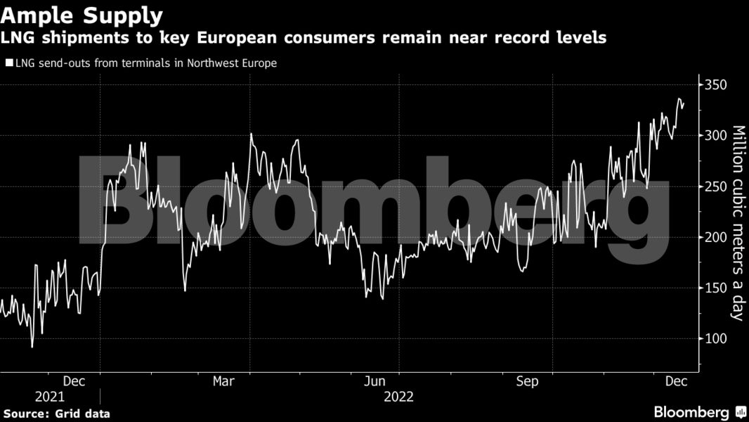 Τα συμβόλαια μελλοντικής εκπλήρωσης του ευρωπαϊκού σημείου αναφοράς υποχώρησαν έως και 9%, πέφτοντας κάτω από τα 100 ευρώ για πρώτη φορά εδώ και πάνω από έναν μήνα. Ο καιρός σε μεγάλο μέρος της Ευρώπης παραμένει ήπιος εν μέσω εισροής υγροποιημένου φυσικού αερίου, το οποίο συμβάλλει στη μείωση των τιμών.