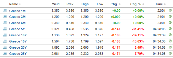 Η απόδοση του 10ετούς οδεύει προς ιστορικά χαμηλά επίπεδα. Συγκεκριμένα, αποκλιμακώθηκε κατά 14,11%, στο 1,136% από 1,31% της προηγούμενης συνεδρίασης.