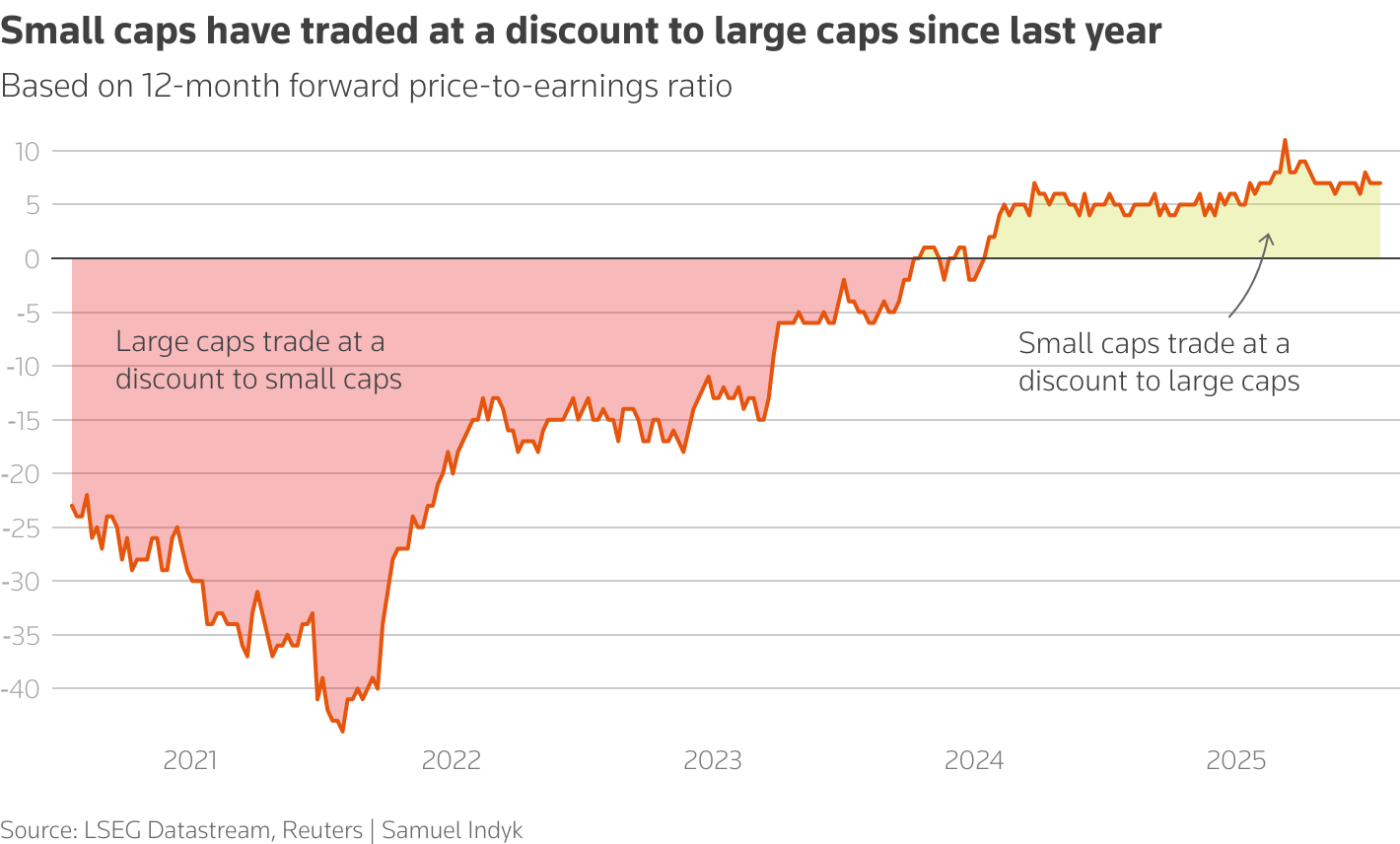 Οι small cap διαπραγματεύονταν με ρεκόρ έκπτωσης 11% σε σχέση με τις μεγαλύτερες εταιρείες τον Μάρτιο του τρέχοντος έτους, αλλά έκτοτε η έκπτωση έχει μειωθεί.