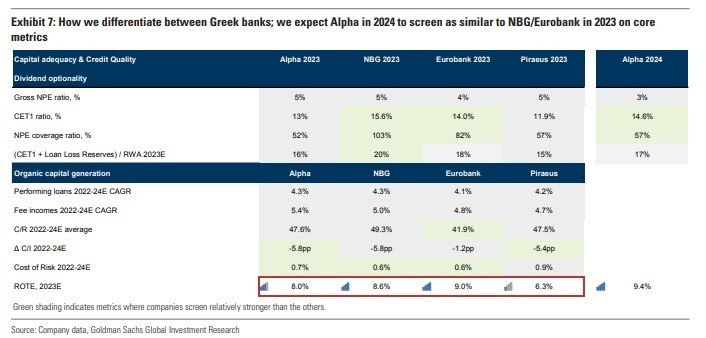 «Οι ελληνικές τράπεζες συνέχισαν να επιδεικνύουν πρόοδο όσον αφορά τη βελτιστοποίηση των NPEs, αλλά και τη δημιουργία κεφαλαίων και κεφαλαιακών αποθεμάτων κατά το α’ τρίμηνο του 2022, παρέχοντας καλύτερες από τις αναμενόμενες επιδόσεις στις βασικές λειτουργικές τάσεις» είναι το σχόλιο της Goldmans Sachs για τον εγχώριο χρηματοπιστωτικό κλάδο, προσθέτοντας μάλιστα ότι αναμένεται συνέχιση των τάσεων και το β’ τρίμηνο του έτους.