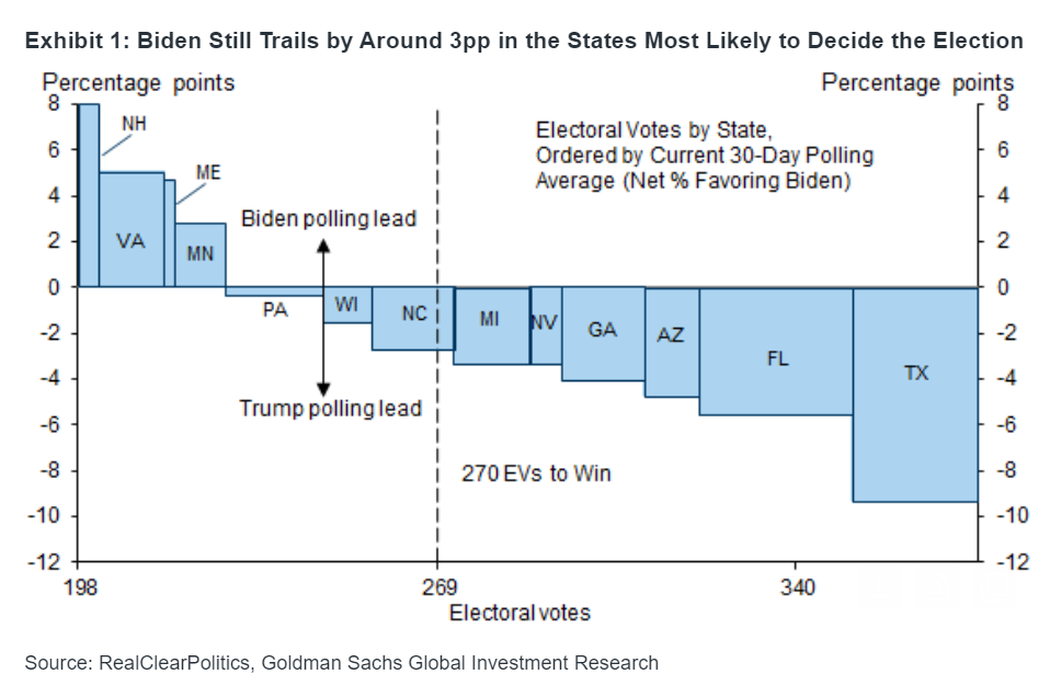 Η αμερικανική τράπεζα Goldman Sachs εξηγεί ότι οι εξελίξεις στις αμερικανικές εκλογές όσο περνάει ο καιρός και με την κατάσταση γεωπολιτικά να είναι συνεχίζει να «βαραίνει» αποκτούν ακόμα μεγαλύτερη σημασία.