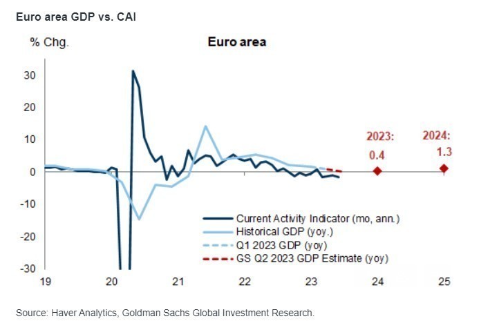 – Η ΕΚΤ θα πραγματοποιήσει αυξήσεις 25 μ.β. τον Ιούλιο και το Σεπτέμβριο για τελικό επιτόκιο 4% το Σεπτέμβριο. Η GS βλέπει εμπόδια στα δεδομένα που θα θέσουν υπό αμφισβήτηση την αύξηση του Σεπτεμβρίου και πιστεύει ότι η συνεχιζόμενη ανθεκτικότητα της αγοράς εργασίας και ο αυξημένος πληθωρισμός στον τομέα των υπηρεσιών θα μπορούσαν κάλλιστα να παρατείνουν τον κύκλο σύσφιξης στο 4ο τρίμηνο.