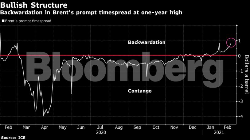 Τα συμβόλαια στο Λονδίνο αυξήθηκαν κατά 0,8% μετά το κλείσιμο στο υψηλότερο επίπεδο εδώ και 13 μήνες. Το παγκόσμιο σημείο αναφοράς για το αργό ανέβηκε νωρίτερα πάνω από τα 65 δολάρια. Σύμφωνα με τους traders, πάνω από 4 εκατομμύρια βαρέλια ημερησίως στις ΗΠΑ είναι πλέον εκτός αγοράς, εν μέσω ενός άνευ προηγουμένου κύματος κακοκαιρίας, το οποίο έχει παγώσει τις λειτουργίες των δεξαμενών άντλησης και οδήγησε σε εκτεταμένες διακοπές ρεύματος. Ωστόσο, μια σειρά διακοπών λειτουργίας των διυλιστηρίων οδήγησε σε μείωση αργού εντός της χώρας, ενώ η κατανάλωση βενζίνης επίσης μειώνεται, καθώς οι παγωμένοι δρόμοι εμποδίζουν τους Αμερικανούς να βγουν από τα σπίτια τους.