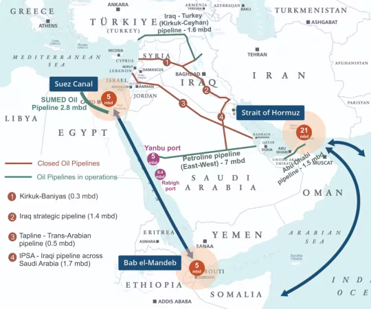 «Ουσιαστικά, δύο σημαντικοί διάδρομοι του παγκόσμιου εμπορίου ενέργειας εκτίθενται ταυτόχρονα, περιορίζοντας τις επιλογές αναδρομολόγησης και αυξάνοντας τον κίνδυνο για την αλυσίδα εφοδιασμού σε ολόκληρο το σύστημα», τόνισαν οι αναλυτές.