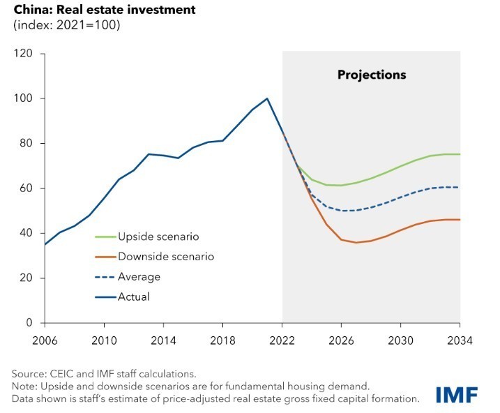 Το Διεθνές Νομισματικό Ταμείο δήλωσε ότι αναμένει μείωση της ζήτησης κατοικιών κατά 50% στην Κίνα την επόμενη δεκαετία.