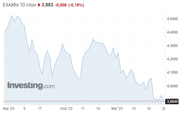 Είναι χαρακτηριστικό ότι η απόδοση του 10ετούς ομολόγου της Ελλάδας ανέρχεται στο 3,88%, ενώ την ίδια στιγμή η απόδοση του 10ετούς ομολόγου της Ιταλίας βρίσκεται στο 4,38%. Αυτό σημαίνει ότι το spread των δύο χωρών κυμαίνεται στις 50 μονάδες βάσης, δηλαδή στο υψηλότερο επίπεδο των τελευταίων σχεδόν 25 ετών.