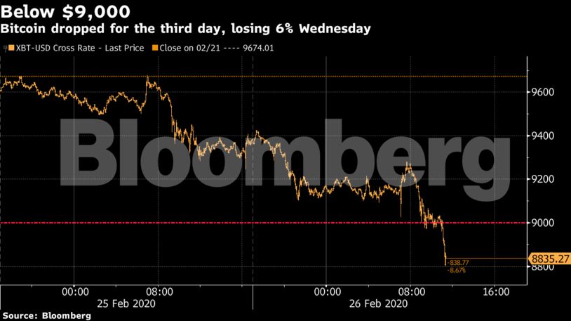 Σύμφωνα με το Bloomberg, το κρυπτονόμισμα διαπραγματεύθηκε στα 8.795 δολάρια στις 11:43 π.μ. (ώρα Νέας Υόρκης), με τον αναλυτή της Oanda Corp, Edward Moya, να σημειώνει ότι τα «κρυπτονομίσματα βρίσκονται σε δύσκολη θέση», ενώ η «σφαγή» των τελευταίων ημερών, στον κλάδο των ηλεκτρονικών νομισμάτων, έχει κάνει τους επενδυτές να αμφυσβητούν την πραγματική αξία του Bitcoin.