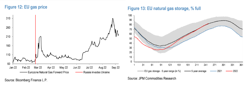 «Δεν βλέπουμε ελλείψεις, ούτε απαραίτητα περαιτέρω άνοδο των τιμών. Οι τιμές του φυσικού αερίου κινούνταν ανοδικά κατά τη διάρκεια του καλοκαιριού, εξαιτίας της αβεβαιότητας σχετικά με την προμήθεια φυσικού αερίου. Μετά τη διακοπή της προμήθειας του Nord Stream 1 επ’ αόριστον, αυξήθηκαν και πάλι, αλλά πιστεύουμε ότι αυτό δεν θα διαρκέσει», εξηγεί η JPM.