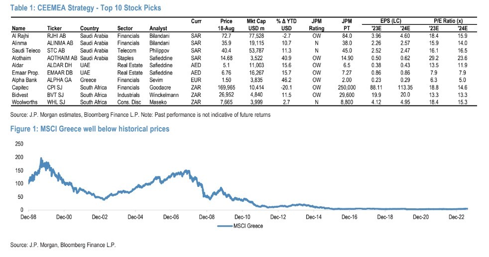 Μια ισχυρή σειρά αποτελεσμάτων δεύτερου τριμήνου από τις ελληνικές τράπεζες εδραιώνουν την προτίμηση της για την Ελλάδα εντός της περιοχής CEEMEA (Κεντρική και Ανατολική Ευρώπη, Μέση Ανατολή και Αφρική). Οι ελληνικές τράπεζες (οι οποίες αποτελούν το 39% του δείκτη MSCI Greece) είχαν μια ισχυρή περίοδο αποτελεσμάτων β’ τριμήνου, με τις τέσσερις τράπεζες να ξεπερνούν τις εκτιμήσεις, με μέση έκπληξη 17% στα κέρδη. Το σημαντικό είναι ότι η καθοδήγηση συνεχίζει να είναι υψηλότερη. Η μελλοντική τιμή προς λογιστική αξία είναι στις 0,6 φορές και οι ελληνικές τράπεζες είναι μεταξύ των φθηνότερων τραπεζών στην αναδυόμενη Ευρώπη, ενώ η Τράπεζα Πειραιώς προστέθηκε στον MSCI EMEA κατά την τριμηνιαία συνεδρίαση του Αυγούστου.