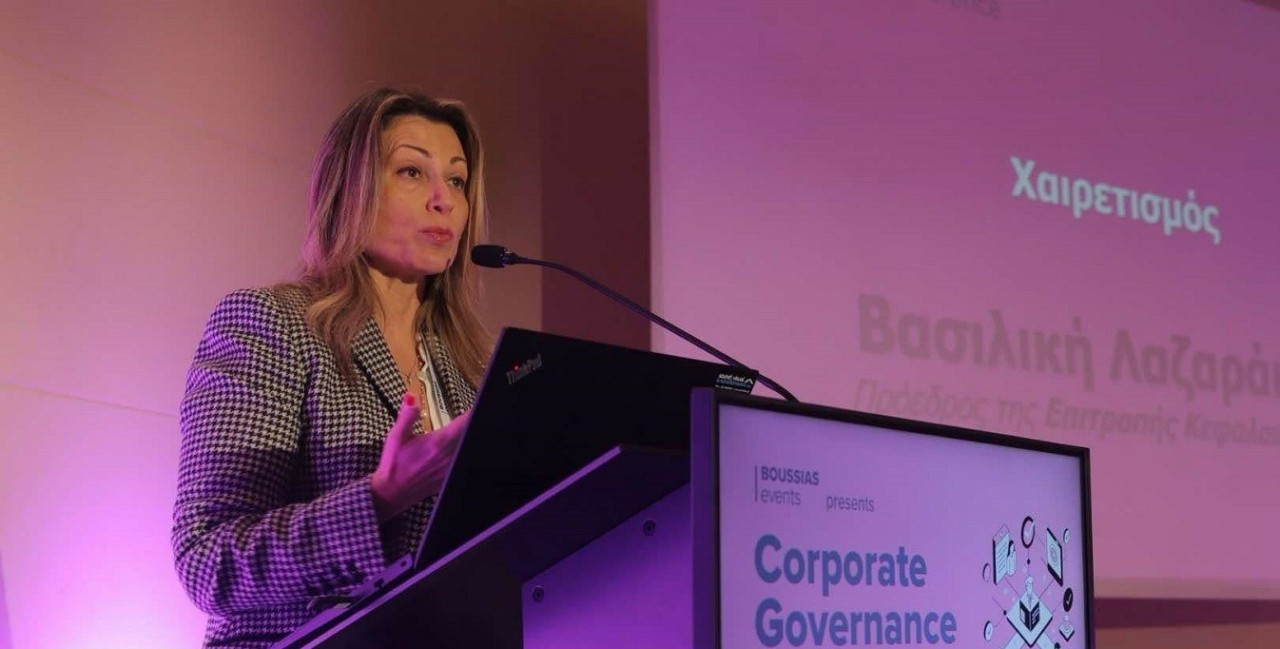 Στη σημασία της ουσιαστικής συμμόρφωσης με τους κανόνες της εταιρικής διακυβέρνησης καθώς και στην πορεία εφαρμογής του πλαισίου αυτού τα τελευταία 4 χρόνια αλλά και στις προτεινόμενες τροποποιήσεις από την Επιτροπή Κεφαλαιαγοράς κάποιων σημείων του πλαισίου αυτού αναφέρθηκε η Βασιλική Λαζαράκου, Πρόεδρος της Επιτροπής Κεφαλαιαγοράς μιλώντας στο συνέδριο για την εταιρική διακυβέρνηση Corporate Governance & Compliance conference που διοργάνωσε η Boussias events.
