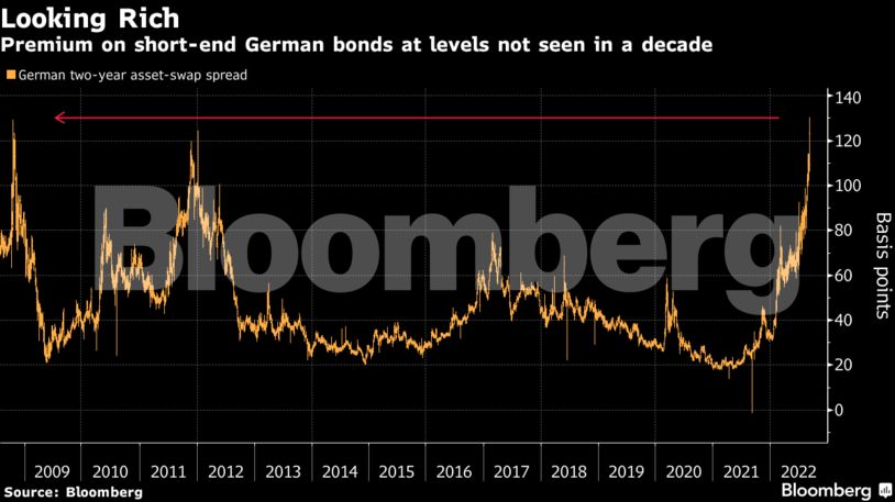 Είναι χαρακτηριστικό ότι το κόστος δανεισμού στα γερμανικά κρατικά ομόλογα, τα οποία βρίσκονται στην αγορά των repo, έχει αυξηθεί μόλις κατά 57 μονάδες βάσης σε σχέση με την προηγούμενη εβδομάδα, όταν η ΕΚΤ προχώρησε στην ιστορική αύξηση των επιτοκίων κατά 75 μονάδες βάσης (η μεγαλύτερη από την ίδρυση του ευρώ).