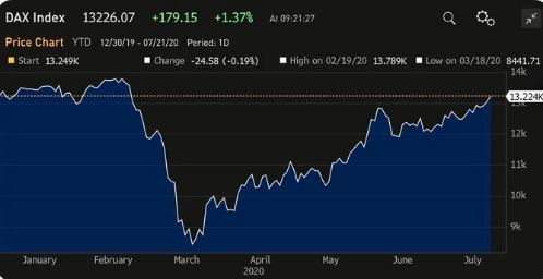 Ο DAX στη Φρανκφούρτη μάλιστα διέγραψε τις απώλειες που έχει σημειώσει από τις αρχές του 2020.