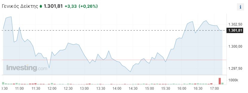 Το Χρηματιστήριο Αθηνών, ενόσω απομένουν ελάχιστες συνεδριάσεις μέχρι το τέλος του έτους, δίνει συνέχεια στην πλαγιο-ανοδική κίνηση και (επιτέλους) διασπά τις αντιστάσεις των 1.300 μονάδων, έπειτα από δύο ανεπιτυχείς προσπάθειες.